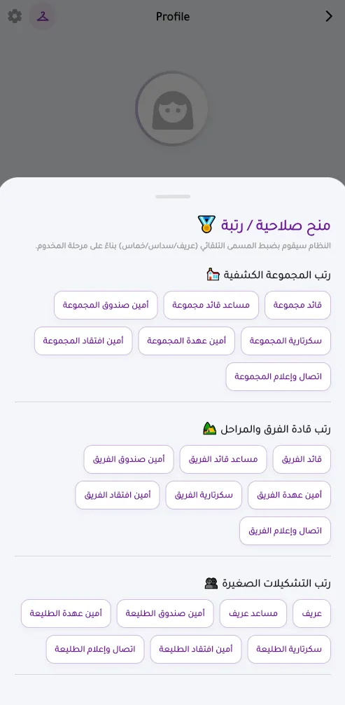الخطوة الأهم هي تفويض الصلاحيات! بصفتك قائد المجموعة، أنت من يحدد أدوار الكشافة ويمنحهم الرتب: