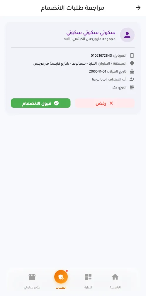 1. إدارة طلبات الانضمام 📥