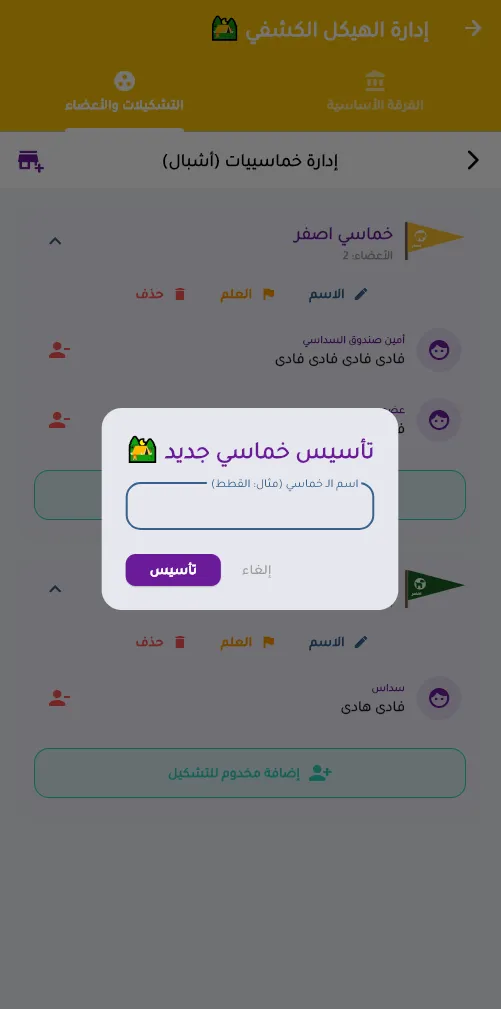 1. إنشاء التشكيلات (الطلائع/السداسيات) 🏕️