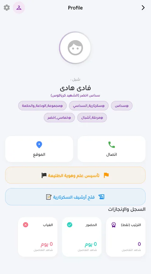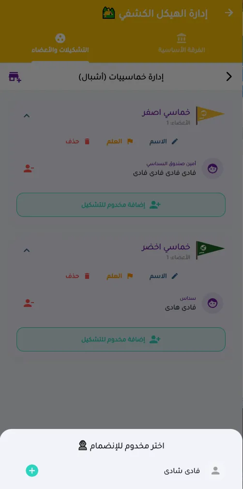 2. إدراج الكشافة وتعيين "العرفاء" 🎖️