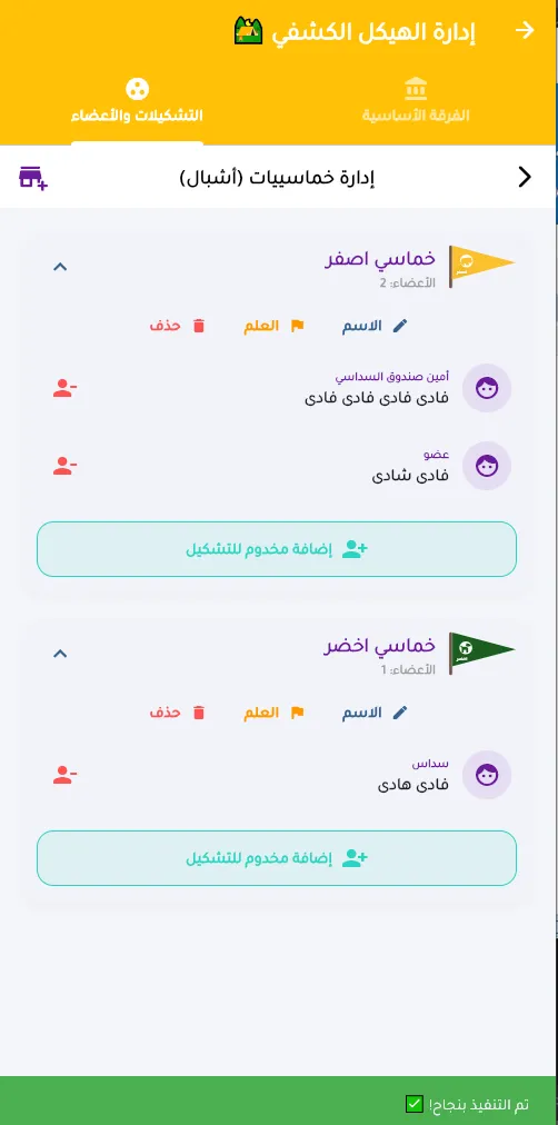 - في شاشة "التشكيلات والأعضاء"، ستجد الطلائع التي أنشأتها للتو.
